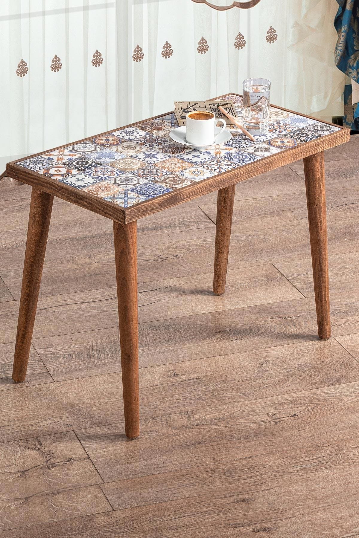 Zoek jij een prachtige bijzettafel met een blad van echt keramiek. Kijk dan niet verder. Deze prachtige keramiek bijzettafel is een echte blikvanger. Geef jezelf een prachtige koffie ervaring met deze houten bijzettafel.