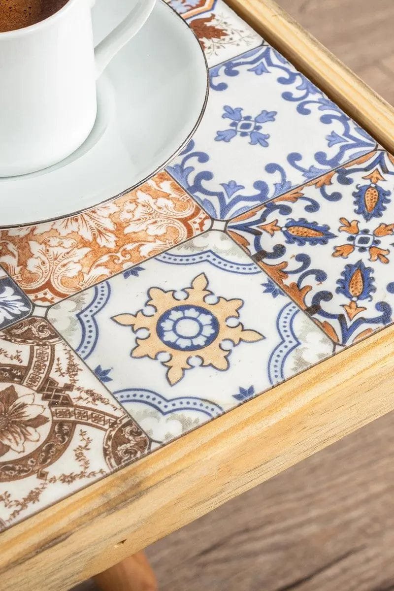 Deze prachtige bijzettafeltje van Pochon Home heeft een tafelblad van echt keramiek en een echt houten omhulsel. De bijzettafel geeft je woonkamer meteen een nieuwe sfeer en de blauwe tinten op het blad zorgen voor rust in je kamer. Gebruik de bijzettafel als een presenteer blad voor je mooiste planten of laat je gasten voelen als ware koning(in) terwijl ze de lekkerste koffie drinken.