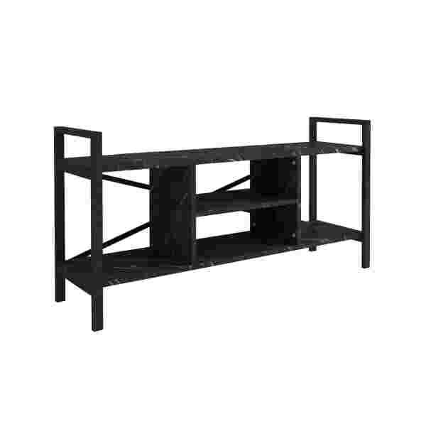 Deze tv kast is gemaakt van hoogwaardige spaanplaat en stevige metalen poten. Met deze tv meubel hoef jij je niet druk te maken of het wel in je woning staat. Deze industriële look staat in elke woning. Leg mooie plantjes of vaasjes op de planken en finish de look.